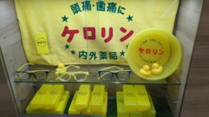 お風呂で見る黄色い風呂桶でもおなじみ、富山の薬、解熱鎮痛剤の「ケロリン」です。